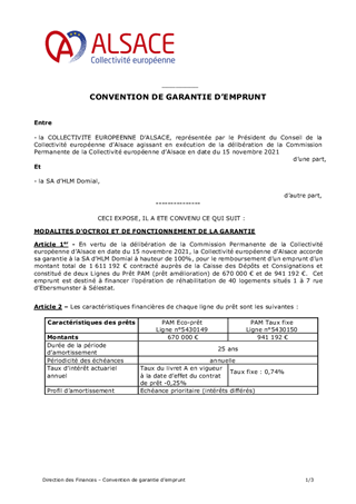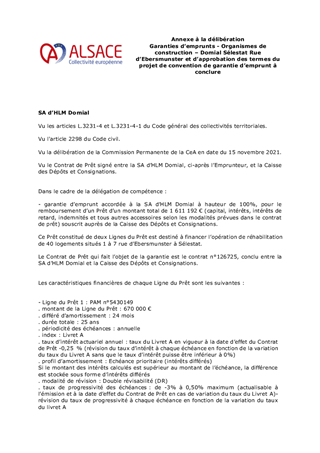 PROPOSITIONS DE GARANTIES D'EMPRUNTS - ORGANISMES DE CONSTRUCTION -DOMIAL SÉLESTAT RUE D'EBERSMUNSTER ET D'APPROBATION DES TERMES DU PROJET DE CONVENTION DE GARANTIE D'EMPRUNT À CONCLURE