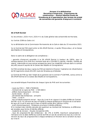 PROPOSITIONS DE GARANTIES D'EMPRUNTS - ORGANISMES DE CONSTRUCTION -DOMIAL SÉLESTAT ROUTE DE STRASBOURG ET D'APPROBATION DES TERMES DU PROJET DE CONVENTION DE GARANTIE D'EMPRUNT À CONCLURE