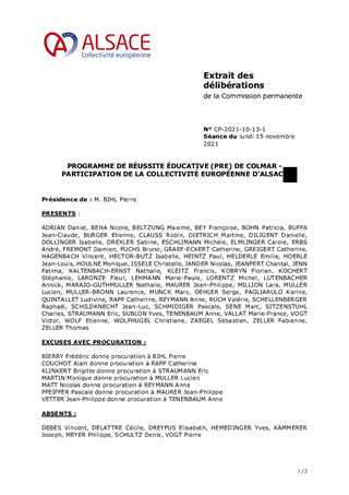 PROGRAMME DE RÉUSSITE ÉDUCATIVE (PRE) DE COLMAR - PARTICIPATION DE LA COLLECTIVITÉ EUROPÉENNE D'ALSACE