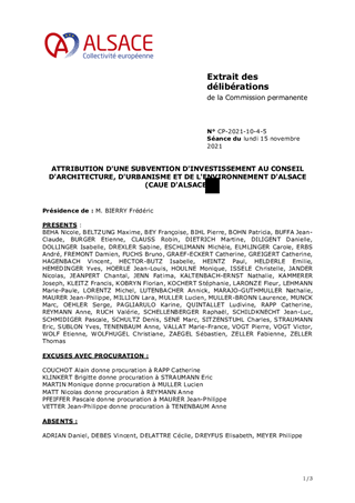 ATTRIBUTION D'UNE SUBVENTION D'INVESTISSEMENT AU CONSEIL D'ARCHITECTURE, D'URBANISME ET DE L'ENVIRONNEMENT D'ALSACE (CAUE D'ALSACE)