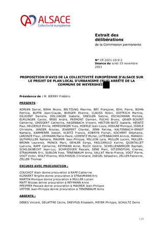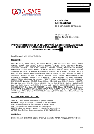 PROPOSITION D'AVIS DE LA COLLECTIVITÉ EUROPÉENNE D'ALSACE SUR LE PROJET DE PLAN LOCAL D'URBANISME (PLU) ARRÊTÉ DE LA COMMUNE DE WEYERSHEIM