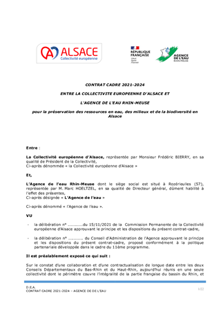CONTRAT CADRE DE PARTENARIAT ENTRE LA COLLECTIVITÉ EUROPÉENNE D'ALSACE ET L'AGENCE DE L'EAU RHIN MEUSE