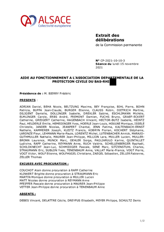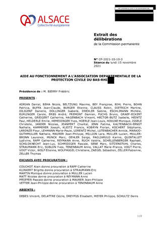 AIDE AU FONCTIONNEMENT A L'ASSOCIATION DEPARTEMENTALE DE LA PROTECTION CIVILE DU BAS-RHIN