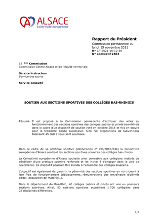 SOUTIEN AUX SECTIONS SPORTIVES DES COLLÈGES BAS-RHINOIS