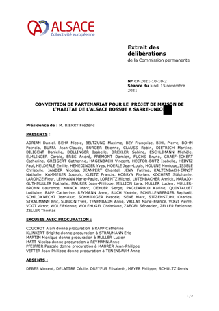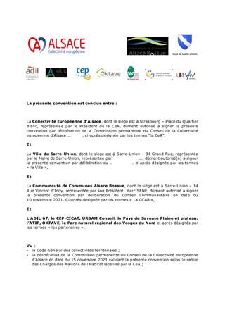 CONVENTION DE PARTENARIAT POUR LEPROJET DE MAISON DE L'HABITAT DE L'ALSACE BOSSUE A SARRE-UNION