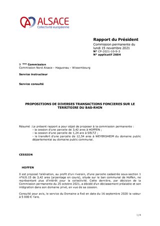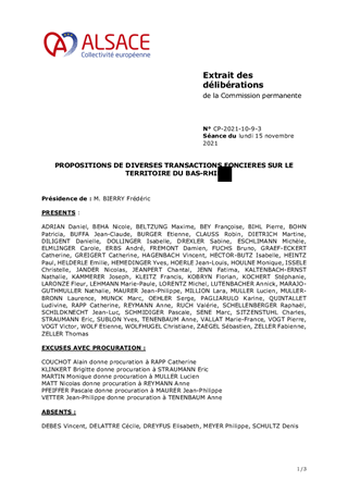 PROPOSITIONS DE DIVERSES TRANSACTIONS FONCIERES SUR LE TERRITOIRE DU BAS-RHIN