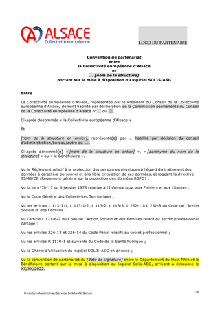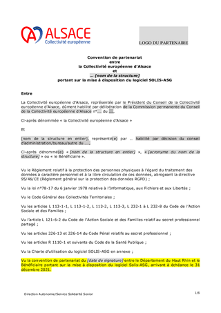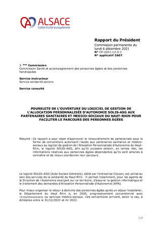POURSUITE DE L'OUVERTURE DU LOGICIEL DE GESTION DE L'ALLOCATION PERSONNALISÉE D'AUTONOMIE SOLIS-ASG AUX PARTENAIRES SANITAIRES ET MEDICO-SOCIAUX DU HAUT-RHIN POUR FACILITER LE PARCOURS DES PERSONNES ÂGÉES