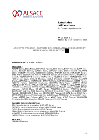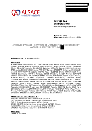 ARCHIVES D'ALSACE - GRATUITÉ DE L'UTILISATION DES DONNÉES ET AUTRES MODALITÉS PRATIQUES