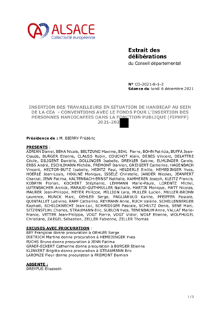 INSERTION DES TRAVAILLEURS EN SITUATION DE HANDICAP AU SEIN DE LA CEA- CONVENTIONS AVEC LE FONDS POUR L'INSERTION DES PERSONNES HANDICAPEES DANS LA FONCTION PUBLIQUE (FIPHFP) 2021-2024