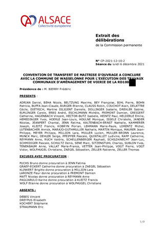 CONVENTION DE TRANSFERT DE MAITRISE D'OUVRAGE A CONCLURE AVEC LA COMMUNE DE WASSELONNE POUR L'EXÉCUTION DES TRAVAUX COMMUNAUX D'AMÉNAGEMENT DE VOIRIE DE LA RD1004