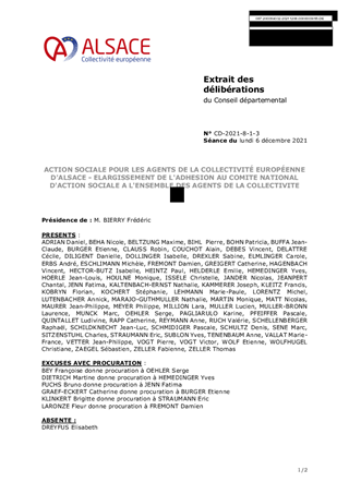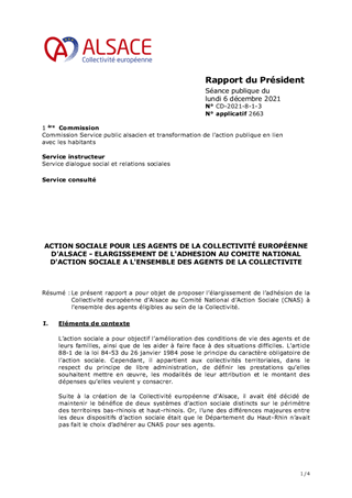 Le présent rapport a pour objet de proposer l’élargissement de l’adhésion de la Collectivité européenne d’Alsace au Comité National d’Action Sociale (CNAS) à l’ensemble des agents éligibles au sein de la Collectivité.