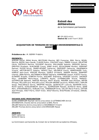 ACQUISITION DE TERRAINS DE NATURE ENVIRONNEMENTALE À WOERTH