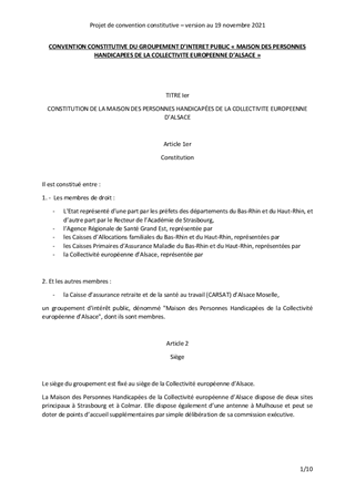 CRÉATION DU GIP MAISON DES PERSONNES HANDICAPEES DE LA COLLECTIVITE EUROPEENNE D'ALSACE - CONVENTION CONSTITUTIVE
