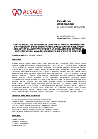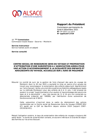 CENTRE SOCIAL DE RESSOURCES GENS DU VOYAGE 67 PROPOSITION D'ATTRIBUTION D'UNE SUBVENTION A L'ASSOCIATION ARSEA POUR UNE ACTION D'ACCOMPAGNEMENT À LA SCOLARITÉ DES ENFANTS ET ADOLESCENTS DU VOYAGE, ACCUEILLIS SUR L'AIRE DE MOLSHEIM