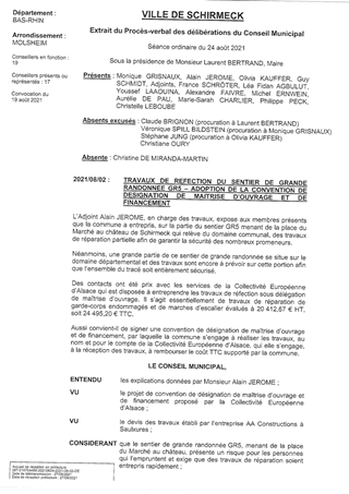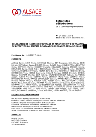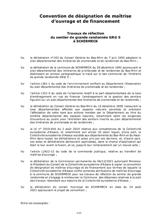 DÉLÉGATION DE MAÎTRISE D'OUVRAGE ET FINANCEMENT DES TRAVAUX DE RÉFECTION DU SENTIER DE GRANDE RANDONNÉE GR5 À SCHIRMECK
