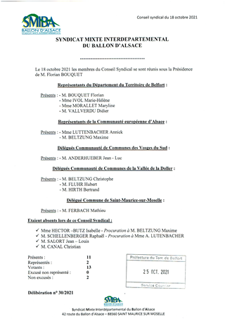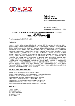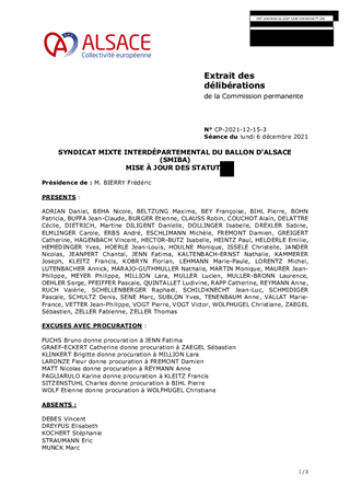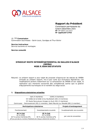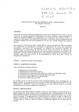 SYNDICAT MIXTE INTERDÉPARTEMENTAL DU BALLON D'ALSACE (SMIBA) MISE À JOUR DES STATUTS