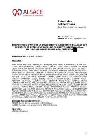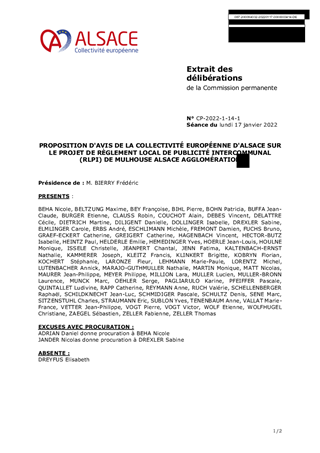 PROPOSITION D'AVIS DE LA COLLECTIVITÉ EUROPÉENNE D'ALSACE SUR LE PROJET DE RÈGLEMENT LOCAL DE PUBLICITÉ INTERCOMMUNAL (RLPI) DE MULHOUSE ALSACE AGGLOMÉRATION