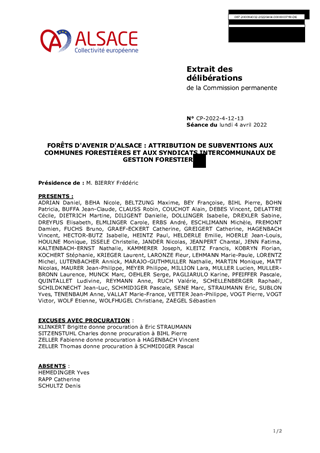 FORÊTS D'AVENIR D'ALSACE : ATTRIBUTION DE SUBVENTIONS AUX COMMUNES FORESTIÈRES ET AUX SYNDICATS INTERCOMMUNAUX DE GESTION FORESTIERE
