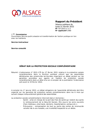 L’ordonnance n° 2021-175 du 17 février 2021 relative à la protection sociale complémentaire dans la fonction publique prévoit que les assemblées délibérantes des collectivités territoriales organisent un débat portant sur les garanties accordées aux agents en matière de protection sociale complémentaire dans un délai d'un an à compter de la publication l'ordonnance soit avant le 19 février 2022.