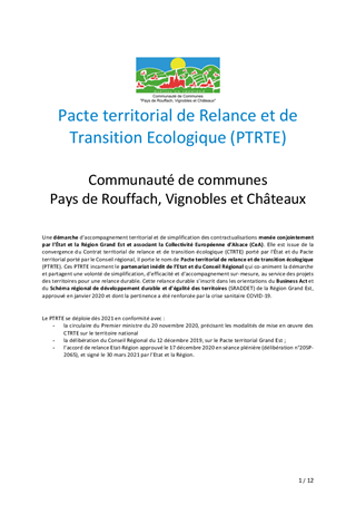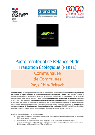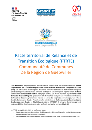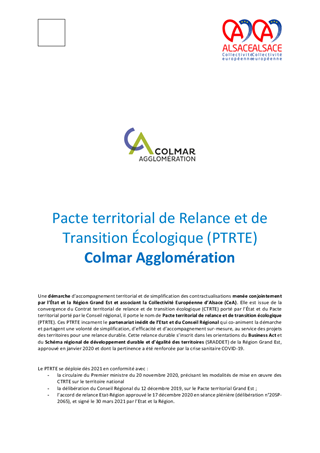 PACTES TERRITORIAUX DE RELANCE ET DE TRANSITION ÉCOLOGIQUE DU TERRITOIRE DE LA RÉGION DE COLMAR