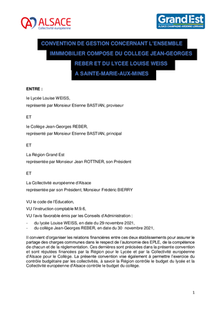 CONVENTION DE GESTION CONCERNANT L'ENSEMBLE IMMOBILIER COMPOSE DU COLLEGE JEAN-GEORGES REBER ET DU LYCEE LOUISE WEISS A SAINTE-MARIE-AUX-MINES