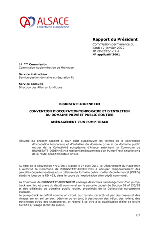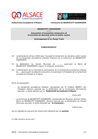 BRUNSTATT-DIDENHEIM CONVENTION D'OCCUPATION TEMPORAIRE ET D'ENTRETIEN DU DOMAINE PRIVÉ ET PUBLIC ROUTIER AMÉNAGEMENT D'UN PUMP-TRACK