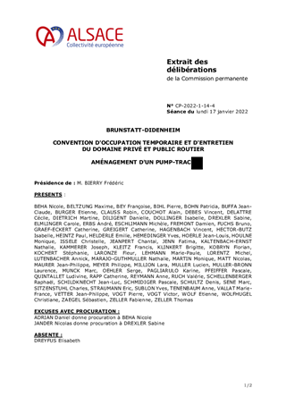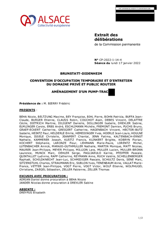 Le présent rapport a pour objet d’approuver les termes de la convention d’occupation temporaire et d’entretien du domaine privé et du domaine public routier de la Collectivité européenne d’Alsace autorisant la Commune de BRUNSTATT-DIDENHEIM à réaliser l’aménagement d’un Pump-Track situé le long de la route départementale n°433.