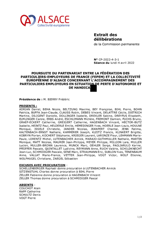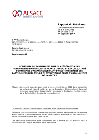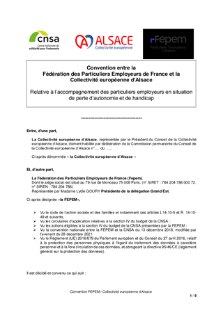 POURSUITE DU PARTENARIAT ENTRE LA FÉDÉRATION DES PARTICULIERS-EMPLOYEURS DE FRANCE (FEPEM) ET LA COLLECTIVITÉ EUROPÉENNE D'ALSACE CONCERNANT L'ACCOMPAGNEMENT DES PARTICULIERS EMPLOYEURS EN SITUATION DE PERTE D'AUTONOMIE ET DE HANDICAP