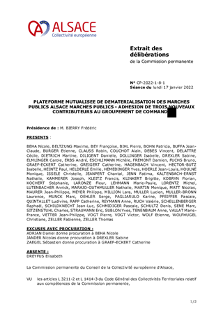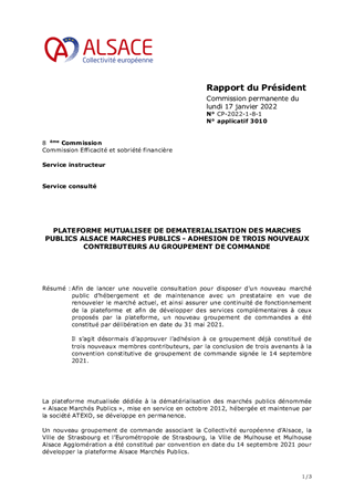 PLATEFORME MUTUALISEE DE DEMATERIALISATION DES MARCHES PUBLICS ALSACE MARCHES PUBLICS - ADHESION DE TROIS NOUVEAUX CONTRIBUTEURS AU GROUPEMENT DE COMMANDE