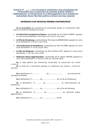 Afin de lancer une nouvelle consultation pour disposer d'un nouveau marché public d’hébergement et de maintenance avec un prestataire en vue de renouveler le marché actuel, et ainsi assurer une continuité de fonctionnement de la plateforme et afin de développer des services complémentaires à ceux proposés par la plateforme, un nouveau groupement de commandes a été constitué par délibération en date du 31 mai 2021. Il s’agit désormais d’approuver l’adhésion à ce groupement déjà constitué de trois nouveaux membres contributeurs, par la conclusion de trois avenants à la convention constitutive de groupement de commande signée le 14 septembre 2021.