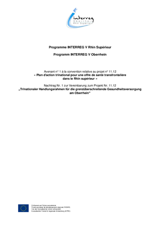 AVENANT N°1 À LA CONVENTION INTERREG RELATIVE AU PROJET TRISAN PORTÉ PAR L'EURO-INSTITUT DE KEHL