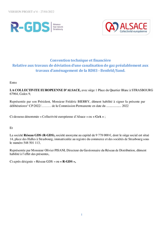 La liaison entre la RD83 et la RD829 à Benfeld-Sand était inscrite au Plan Territoires Connectés et Attractifs 2017-2021 du Département du Bas-Rhin en tant qu’aménagement participant notamment à l’attractivité du territoire. Sa conception a été menée en co-construction avec la Communauté de communes du canton d’Erstein qui participe financièrement à 80% du coût des travaux. L'opération entre à présent dans sa phase de concrétisation sur le terrain. Préalablement aux travaux routiers, le déplacement d’une canalisation de gaz située dans les emprises de travaux s’avère nécessaire. Le présent rapport a ainsi pour objet de proposer la conclusion d’une convention entre la Collectivité européenne d’Alsace et Réseau Gaz de Strasbourg (R-GDS), pour définir les modalités techniques et financières de réalisation des travaux de déplacement de ce réseau de gaz. La Collectivité européenne d'Alsace finance les frais de déplacement de la canalisation pour la partie située en dehors des emprises routières de la RD83, pour un montant forfaitaire estimé à 17 800 € HT. Les autres prestations sont à la charge de R-GDS.