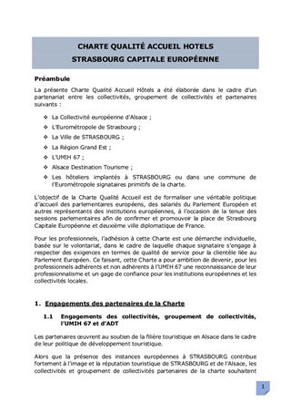 CHARTE QUALITE ACCUEIL HOTELS STRASBOURG CAPITALE EUROPEENNE