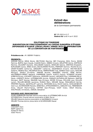 POLITIQUE DU TOURISME SUBVENTION DE FONCTIONNEMENT AU CENTRE EUROPÉEN D'ÉTUDES JAPONAISES D'ALSACE (CEEJA) POUR L'ANNÉE 2022 ET APPROBATION DE LA CONVENTION DE PARTENARIAT