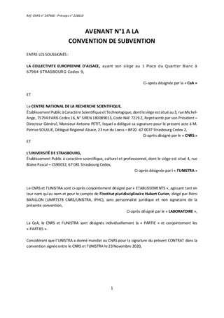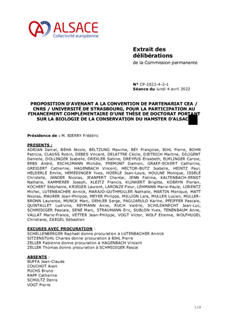 PROPOSITION D'AVENANT A LA CONVENTION DE PARTENARIAT CEA / CNRS / UNIVERSITÉ DE STRASBOURG, POUR LA PARTICIPATION AU FINANCEMENT COMPLÉMENTAIRE D'UNE THÈSE DE DOCTORAT PORTANT SUR LA BIOLOGIE DE LA CONSERVATION DU HAMSTER D'ALSACE