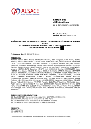 PRÉSERVATION ET RENOUVELLEMENT DES ARBRES TÊTARDS EN MILIEU RURAL ATTRIBUTION D'UNE SUBVENTION D'INVESTISSEMENTA LA COMMUNE DE ROESCHWOOG