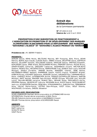 PROPOSITION D'UNE SUBVENTION DE FONCTIONNEMENT A L'ASSOCIATION DE PROMOTION ET DE DÉVELOPPEMENT DES MARQUES ALIMENTAIRES ALSACIENNES POUR LE DÉPLOIEMENTDES MARQUES "SAVOUREZ L'ALSACE" ET "SAVOUREZ L'ALSACE PRODUIT DU TERROIR"