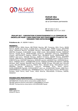 PDALHP D67 - SUBVENTION D'INVESTISSEMENT A LA COMMUNE DE INGWILLER POUR L'AMELIORATION DES CONDITIONS D'HABITAT DE MENAGES TRES DEFAVORISES