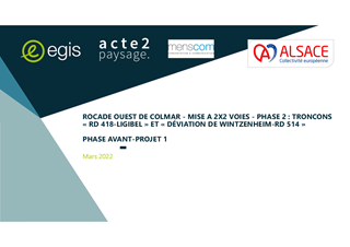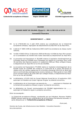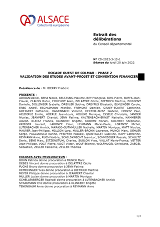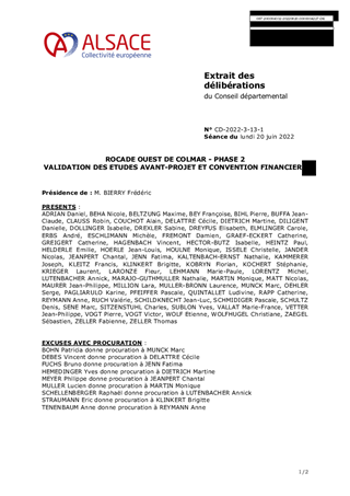 ROCADE OUEST DE COLMAR - PHASE 2 VALIDATION DES ETUDES AVANT-PROJET ET CONVENTION FINANCIERE