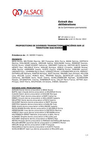 PROPOSITIONS DE DIVERSES TRANSACTIONS FONCIÈRES SUR LE TERRITOIRE BAS-RHINOIS
