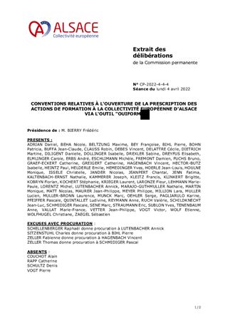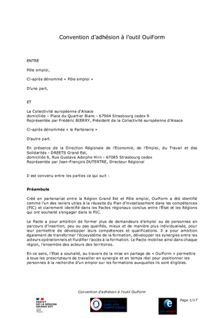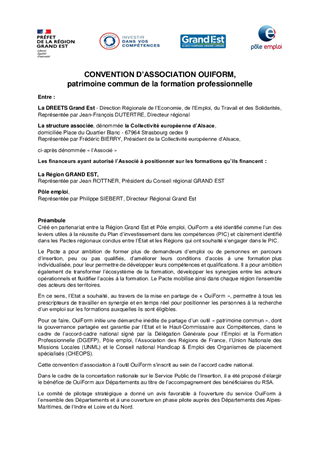 CONVENTIONS RELATIVES À L'OUVERTURE DE LA PRESCRIPTION DES ACTIONS DE FORMATION À LA COLLECTIVITÉ EUROPÉENNE D'ALSACE VIA L'OUTIL "OUIFORM"