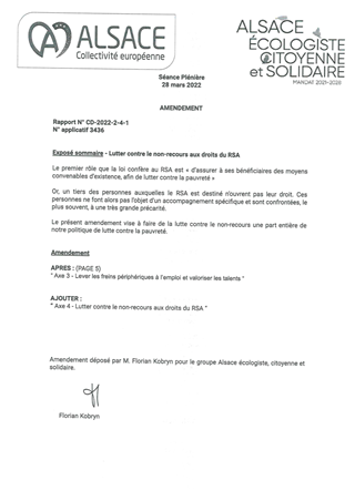 La Collectivité européenne d’Alsace s’engage fortement dans la lutte contre la pauvreté, que la crise sanitaire a malheureusement amplifiée. Le manque de ressources financières se conjugue souvent avec des charges trop élevées. Aujourd’hui, de nombreux ménages n’ont pas d’autres revenus que des aides publiques : plus de 42 000 foyers sont allocataires du revenu de solidarité active (pratiquement le niveau d’avant crise), ce qui représentera un volume de 285M€ en 2022. Cette aide permet d’éviter aux personnes de ne pas tomber dans la grande pauvreté mais ne permet pas à lui seul de sortir de la pauvreté. C’est pourquoi la CEA veut affirmer une volonté de retour à l’activité et à l’emploi des bénéficiaires du RSA et souhaite mobiliser les différents outils à sa disposition pour lutter le plus efficacement possible contre la pauvreté. D’autre part, les charges sont élevées. Le logement constitue le premier poste de dépenses des ménages. L’inflation des coûts de l’énergie rend plus prégnant encore la nécessité d’habiter dans des logements peu énergivores, mais l’offre n’est pas suffisante et les rénovations souvent chères. En outre, l’offre en logement reste déficitaire aussi bien en nombre qu’en qualité, et il est parfois inadapté à des modes de vie et besoins des populations qui ont évolué. C’est pourquoi la CEA d’une part a fixé la transition énergétique comme priorité dans les orientations budgétaires, et d’autre part a demandé l’extension de la délégation des aides à la pierre sur le territoire du Haut-Rhin. 773 agents de la collectivité sont mobilisés au quotidien, et au plus proche des habitants, pour : • Permettre à chaque BRSA un retour à l’emploi, ou a minima à l’activité, en identifiant leurs potentiels, les besoins en formation, les freins potentiels et en assurant un suivi régulier pour mobiliser les différents partenaires • Assurer le juste droit vis-à-vis du rSa, pour limiter les non-recours et lutter contre les fraudes et les abus • Permettre aux personnes de se loger et les soutenir dans leurs dépenses quotidiennes, via le fonds solidarité logement (FSL) qui permet par exemple la prise en charge temporaire de facture d’énergie • Aider plus particulièrement les jeunes via le fonds d’aides aux jeunes en difficulté (FAJD) pour favoriser leur insertion sociale et professionnelle • Accompagner la rénovation et la production de logements, étant entendu que la part du logement dans les budgets des familles devient prépondérante. En 2022, il est proposé de renforcer l’action de la Collectivité européenne d’Alsace pour lutter contre la pauvreté. Cette ambition se traduit concrètement par : Concernant le RSA - un accompagnement renforcé au moment de l’entrée dans le dispositif ; associé à une politique vertueuse du juste droit (100% de suspension de l’allocation en cas d’absence au premier rendez-vous d’évaluation ; cette mesure a permis de réduire fortement les absences et de bien faire prendre conscience du pouvoir d’agir des bénéficiaires) - une action avec et pour l’entreprise pour répondre au besoin de main d’œuvre : les développeurs emploi en particulier seront chargés d’identifier les postes à pourvoir et les compétences des BRSA pour assurer une adéquation. - une levée des freins à l’emploi, avec la mise en place de mode de garde adaptée aux horaires atypiques et des solutions de mobilité. Concernant le logement • La mise en œuvre du fonds Alsace Rénov’ et l’exercice de la délégation de l’aide à la pierre dans le Bas-Rhin pour soutenir la construction et la rénovation de l’habitat • La mise en œuvre d’actions du PDHALPD pour garantir l’accès et le maintien dans le logement • Le soutien aux partenaires de conseils en matière de logement auprès de nos concitoyens • L’aide à l’investissement et au fonctionnement des aires d’accueil des gens du voyage • Le soutien aux villes moyennes • La mobilisation du foncier nécessaire dans un objectif de sobriété (ZAN). En complémentarité de la politique de l’insertion décrite ci-dessus, au plus près des citoyens, l’action sociale de proximité et de la lutte contre la pauvreté de la Collectivité européenne d’Alsace, territorialisée, permet un accueil et un accompagnement social pour la population rencontrant des difficultés d’ordre social, éducatif ou de santé. Ainsi, la collectivité offre à la population, un service public global de solidarité qui intègre les enjeux de lutte contre la précarité, d’insertion, de logement, de protection de l’enfance, d’aide aux majeurs vulnérables, de santé, de précarité ou encore d’autonomie. Les enjeux majeurs pour l’année 2022 de l’Action Sociale de Proximité s’articulent autour de : • Un ajustement des périmètres d’action sur les 7 territoires de vie, pour faciliter la bonne compréhension des usagers et renforcer les partenariats locaux • l’accueil et l’accompagnement du public notamment par le déploiement du référent de parcours, qui doit devenir l’interlocuteur privilégié pour les usagers aux multiples problématiques • la prévention et la lutte contre la pauvreté/précarité, avec les mesures favorisant le retour à l’emploi et à l’activité • L’accompagnement des femmes victimes de violences Eléments budgétaires : Pour la politique Insertion, logement et emploi, il est proposé d’inscrire : En section de fonctionnement : • 317 M€ en dépenses soit – 0,9 M€, • 130 M€ en recettes soit + 3,6 M€. En section d’investissement : • 0,25 M€ en dépenses, stable. Les variations d’Autorisations d’Engagement s’élèvent en dépenses à + 6,8 M€ et les variations d’Autorisations de Programme à + 0,3 M€. Pour la politique de l’Action sociale de proximité, il est proposé d’inscri