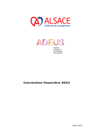 Le présent rapport propose à la Commission permanente d’approuver les termes du projet de convention financière à conclure entre la Collectivité européenne d’Alsace et l'ADEUS pour l’année 2022 et de lui attribuer une subvention de fonctionnement de 312 000 €.