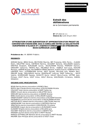 ATTRIBUTION D'UNE SUBVENTION ET APPROBATION D'UN PROJET DE CONVENTION FINANCIÈRE 2022 À CONCLURE ENTRE LA COLLECTIVITÉ EUROPÉENNE D'ALSACE ET L'AGENCE D'URBANISME DE STRASBOURG RHIN SUPÉRIEUR (ADEUS)