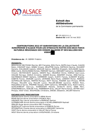 Le présent rapport présente les contributions et subventions de la Collectivité européenne d'Alsace au titre de l'année 2022 pour les syndicats mixtes du Parc Naturel Régional des Vosges du Nord (PNRVN) et du Parc Naturel des Ballons des Vosges (PNRBV) ainsi que la convention financière afférente pour le PNRVN.