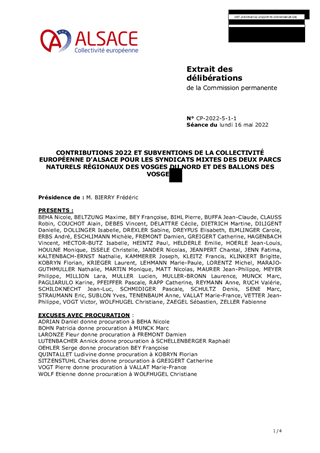 CONTRIBUTIONS 2022 ET SUBVENTIONS DE LA COLLECTIVITÉ EUROPÉENNE D'ALSACE POUR LES SYNDICATS MIXTES DES DEUX PARCS NATURELS RÉGIONAUX DES VOSGES DU NORD ET DES BALLONS DES VOSGES