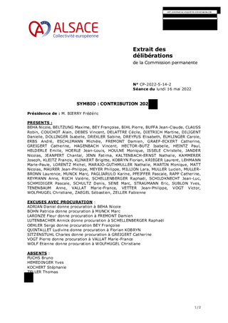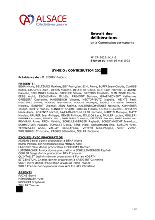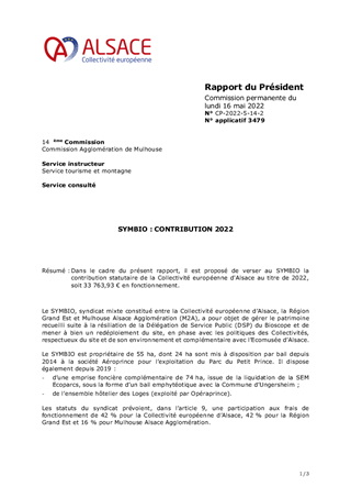 Dans le cadre du présent rapport, il est proposé de verser au SYMBIO la contribution statutaire de la Collectivité européenne d'Alsace au titre de 2022, soit 33 763,93 € en fonctionnement.