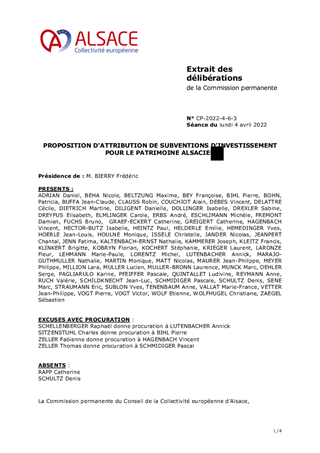 PROPOSITION D'ATTRIBUTION DE SUBVENTIONS D'INVESTISSEMENT POUR LE PATRIMOINE ALSACIEN