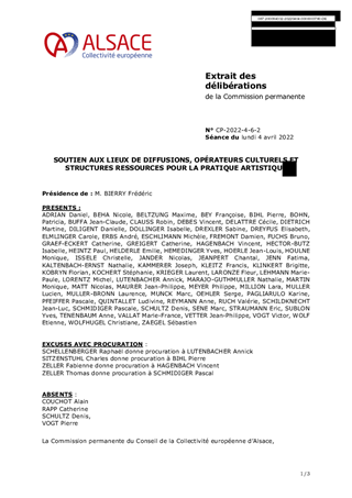 Le présent rapport propose, au titre du soutien aux lieux de diffusion, opérateurs culturels et structures ressources pour la pratique artistique, d'approuver les conventions de partenariat à intervenir avec les structures concernées pour leurs activités en 2022 et d'attribuer et d'autoriser le versement de subventions pour un montant total de 864 220 € en fonctionnement et 50 000 € en investissement, répartis ainsi : - pour l’Opéra du Rhin : 28 000 € - pour l’Agence Culturelle Grand Est : 312 500 € en fonctionnement et 50 000 € en investissement - pour les opérateurs culturels : 228 500 € en fonctionnement - pour les structures ressources pour la pratique artistique : 295 220 € en fonctionnement. Ces dossiers ont fait l'objet d'un avis favorable de la Commission Patrimoine et rayonnement alsacien du 25 mars 2022.