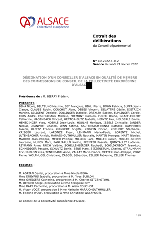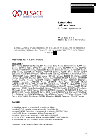 DÉSIGNATION D'UN CONSEILLER D'ALSACE EN QUALITÉ DE MEMBRE DES COMMISSIONS DU CONSEIL DE LA COLLECTIVITÉ EUROPÉENNE D'ALSACE